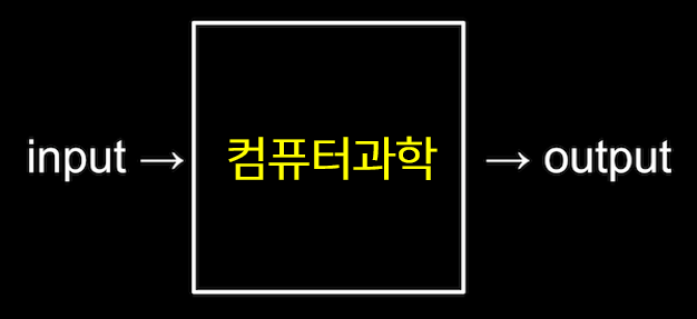 - 문제해결은 입력(input)을 전달받아 출력(output)을 만들어내는 과정으로 그 중간에 있는 과정이 바로 컴퓨터 과학이다.