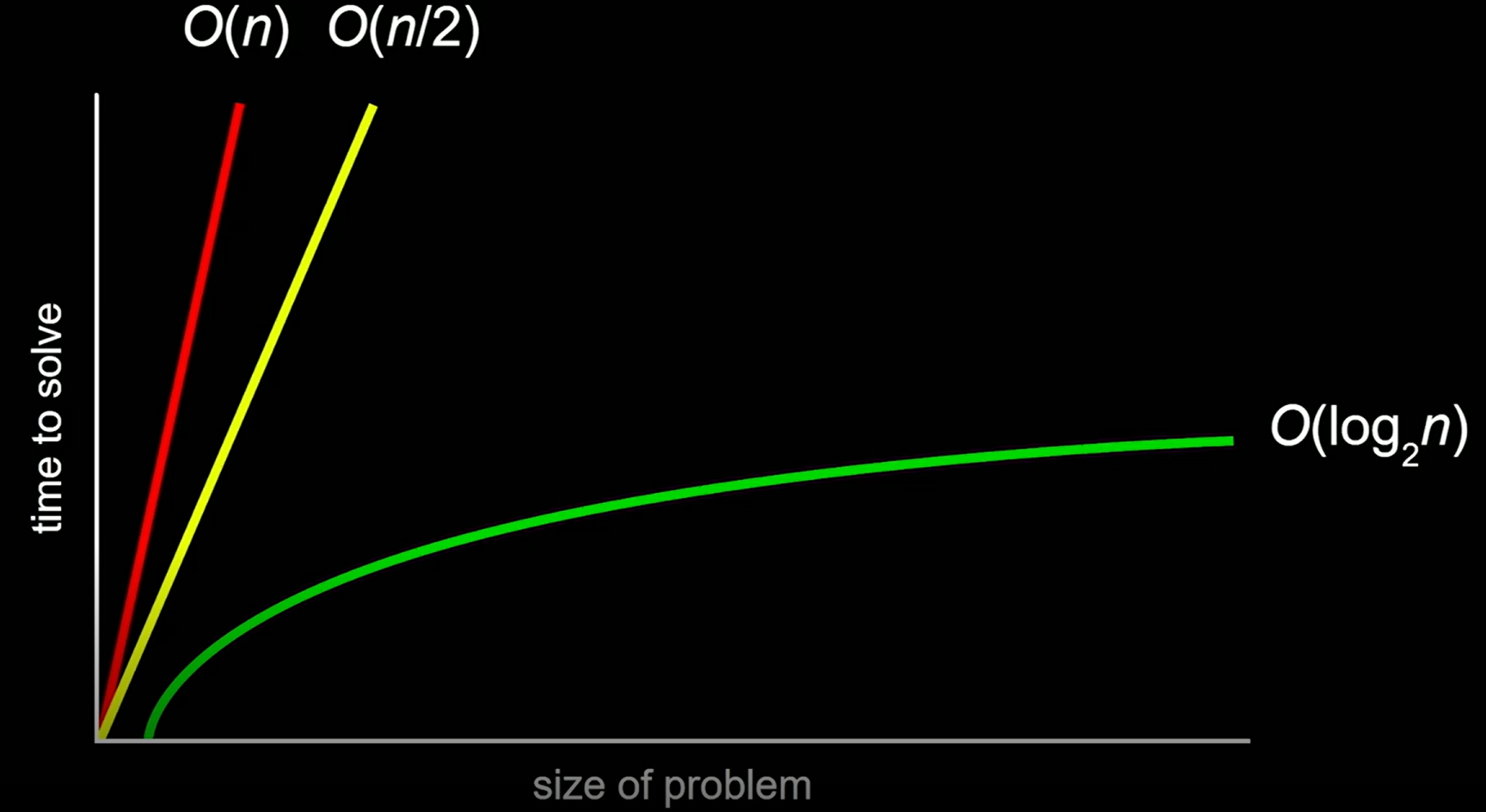 컴퓨터 과학자는 알고리즘의 효율성을 설명할 때 정확히는 O(n/2)일지라도 그냥 O(n)이라고 말한다.