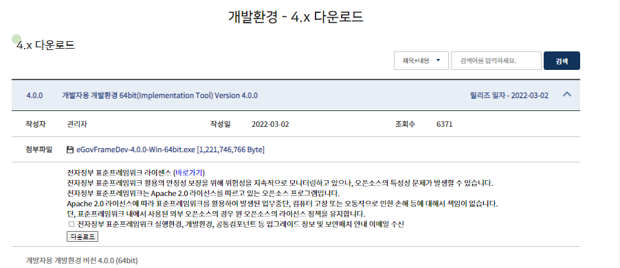 - 국가에서 관리하며 배포하는 프레임워크이다.
