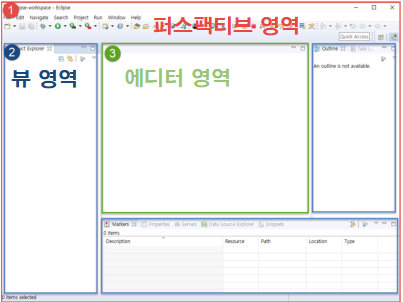 - Open Perspective 메뉴에는 이미 기본적으로 세팅된 창이 제공된다.